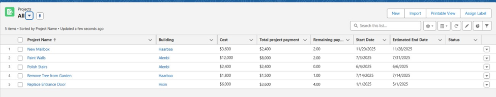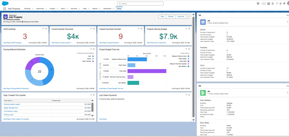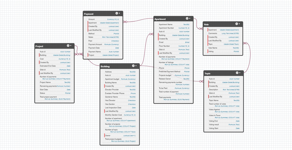 - Implemented a comprehensive Salesforce solution for managing buildings, apartments, projects, and voting topics.