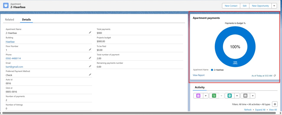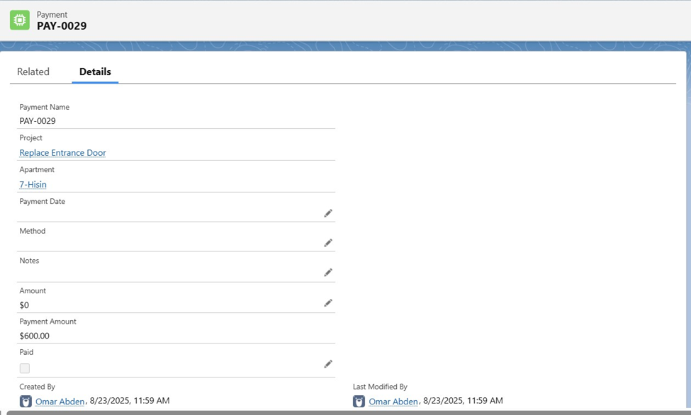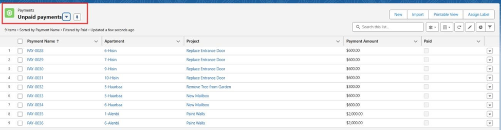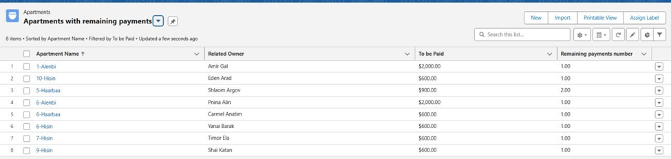- Created a Roll-Up Summary / Flow to count apartments with payment method = “Check”.