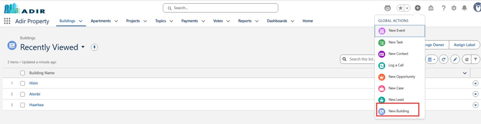 Allow users to quickly create new Building records from any screen using a global action with guided input screens.