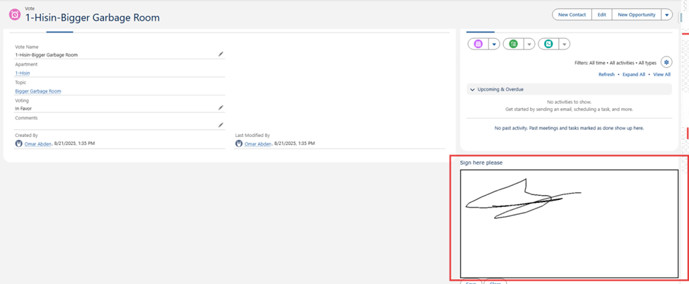 Tenants can now sign directly on the Vote page. Signatures are stored in the system.