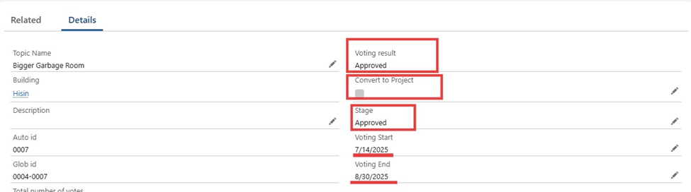 - Checkbox disabled unless vote passed by majority.
