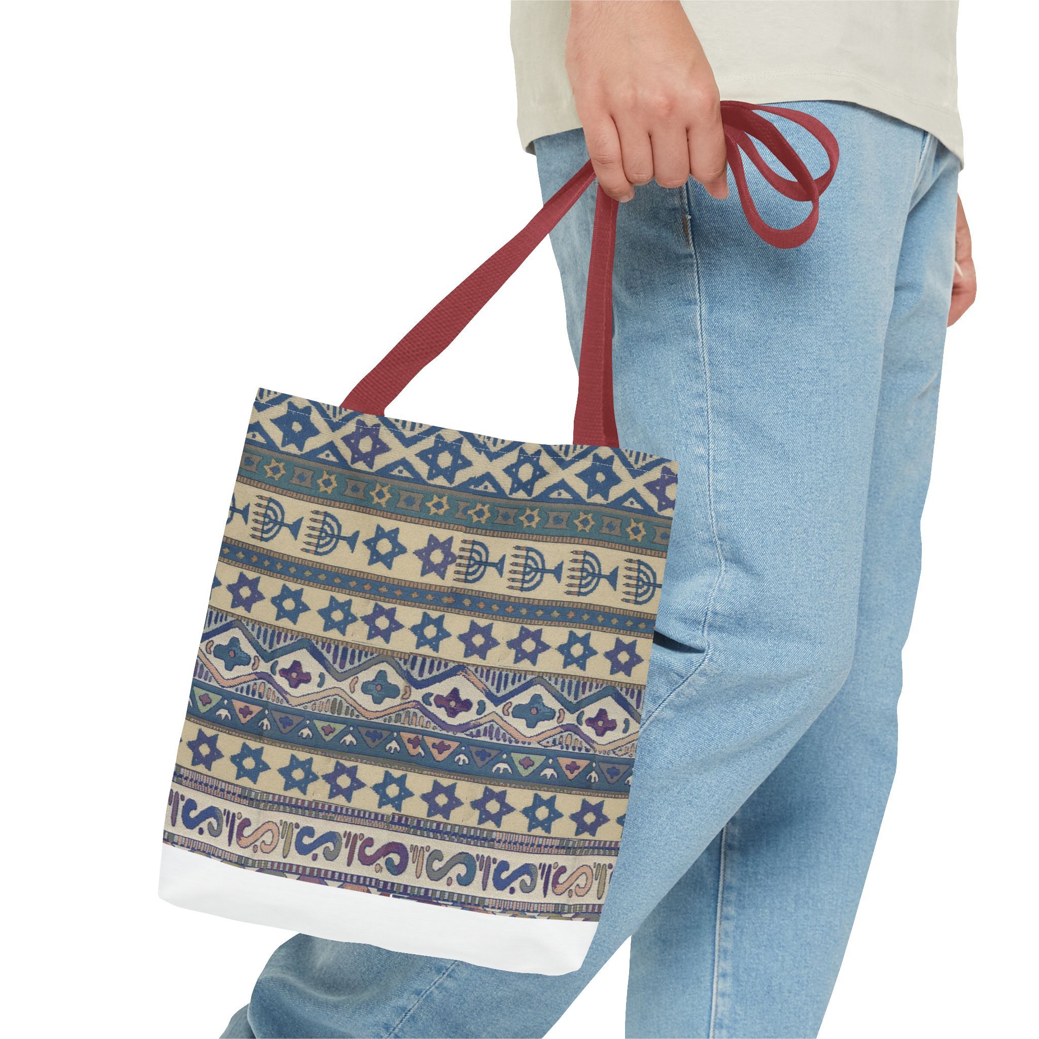 Available in 3 sizes to add both functionality and style, these custom-printed tote bags come with multiple handle colors to match your designs. Made with spun polyester, these bags feature double-stitched seams, cotton webbing straps, and nonwoven laminate lining for high-end durability. Your all-over print is created with dye sublimation for high-end visuals.